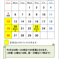 9月の定休日のお知らせです。20日(月)、23日(木)はお休みとさせていただきます。…