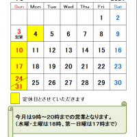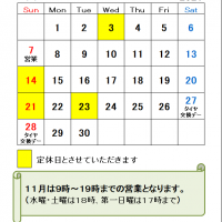 11月の定休日のお知らせです。今月から営業時間が9時~19時までとなります。…